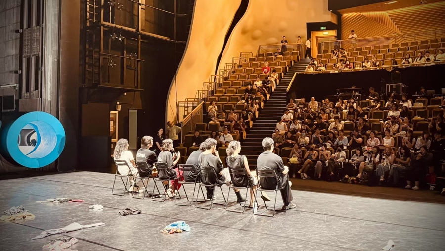“台前幕后”板块让市民走进舞剧创作的现场。两部来自“培青计划”的作品——《世说新语》和《阿姎白》的彩排面向公众免费开放。在《世说新语》的排练展示中,主创团队通过极具冲击力的分层装置艺术,巧妙解构传统文化元素。在《阿姎白》的开放排练中,编导董继兰不仅展示了剧目片段,还与观众展开互动交流,真诚听取意见。开放的创作方式打破了舞台与观众的界限,让艺术创作与社会大众形成良性对话。